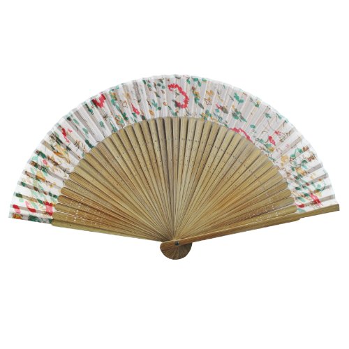 Bamboo Folding Fan - Floral Design in White - Natural