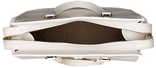 Premium leather satchel features signature hardware, inner zip and 2 slip pockets, flat base with protective metal feet