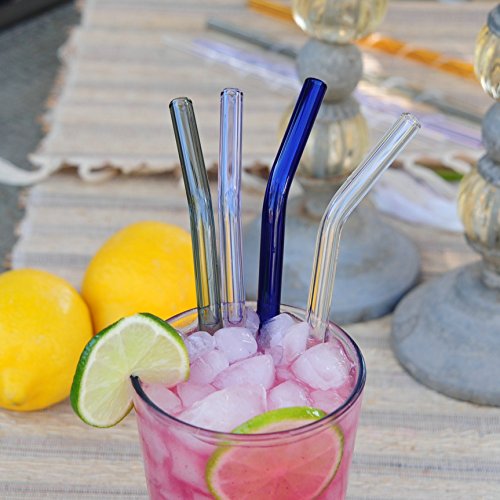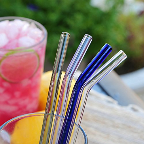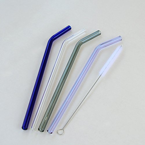 Glass Straws 9in9mm with Cleaning Brush 4 Mix Pack(Blue,Purple,Clear,Smoke) (Bent)