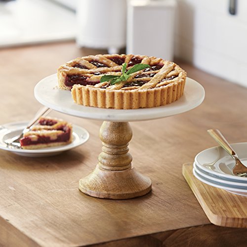 (Mud Pie)/Kitchen Dining/Tableware/DIRECT FROM USA/Mud Pie Marble Wood Pedestal Cake Stand, White