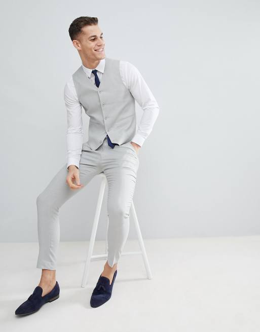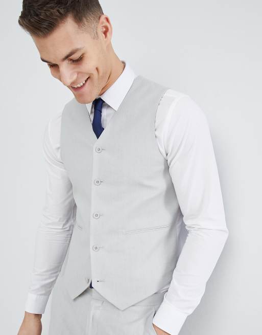 ASOS DESIGN wedding super skinny suit vest in ice gray linen