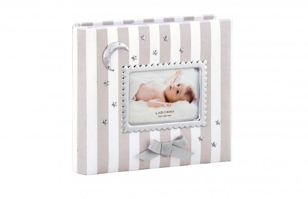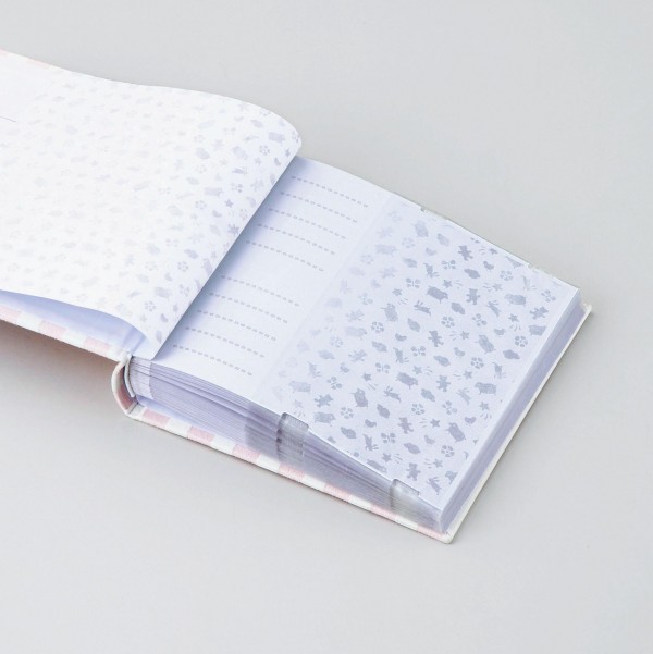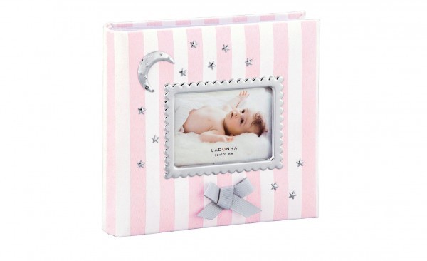 アルバムにはコメントが書き込めるかわいい台紙付で、写真1枚ずつに思い出を書き込めます。淡いカラーとリボンがポイントです。 |