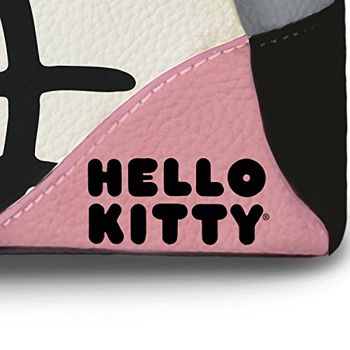 This Hello Kitty purse is expertly crafted of faux leather in a stylish color block combination of pink, cream, gray and black and showcases Hello Kitty's adorable face on the front
