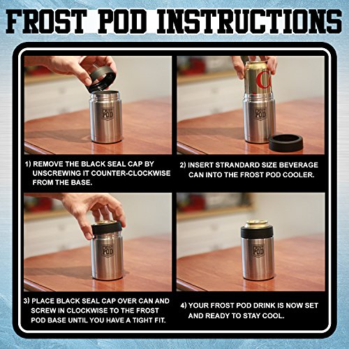 Frost Pod Stainless Steel Beverage Can Insulator Cooler for Can, Double Wall Vacuum Insulated, Our Best Anti Sweat Technology, 12 oz.