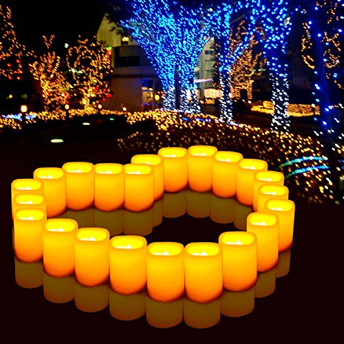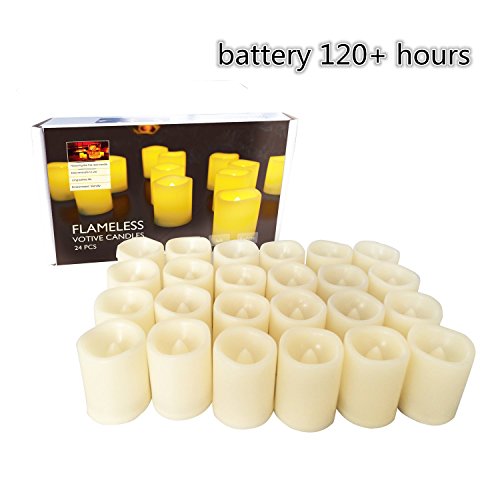ESHOW Set of 24 Premium Flameless Battery-operated Waxen Outdoor Votive Light LED Candle / Flickering Light Bulbs, Long Life 120+ Hours Battery included,for Christmas,Halloween,Propose wedding (24)