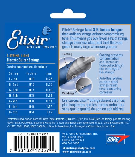 ReleaseDate : 2012-05-28 Studio : Elixir Publisher : Elixir Binding : Electronics Product Description Elixir® Strings deliver the presence, punch, and detail of traditional electric guitar strings. But when it comes to tone life, there is no comparison. Players report with Elixir Strings their tone lasts longer than any other string, uncoated or coated. Elixir Strings for electric guitar are available with NANOWEB® or POLYWEB® Coating. 0