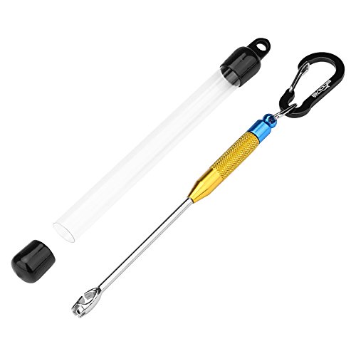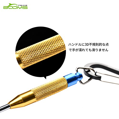 -. Feature : シングルフックに向かって最適なフックリムーバー / ステンレスボディとアルミニウム金色ハンドル / 全長155mm、重さ16gでとてもコンパクトです / カラビナ付き、持ちやすくて使い便利です