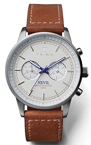 Triwa Ivory Nevil Unisex Chrono Watch Sewn Brown Leather Strap NEST112 SC010215