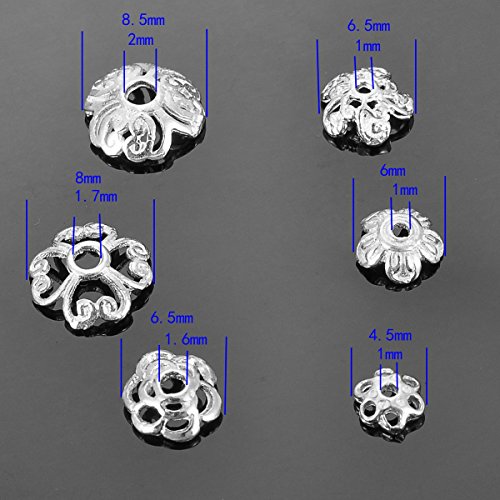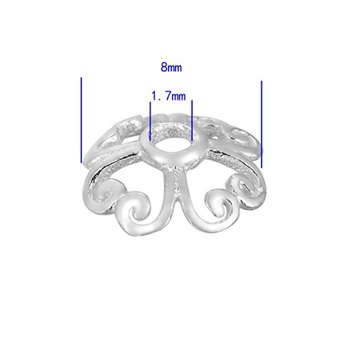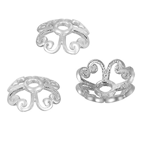 HooAMI 925 Sterling Silver Heart Filigree Flower Shape Bead Caps for Jewelry Making 10pcs,8mm