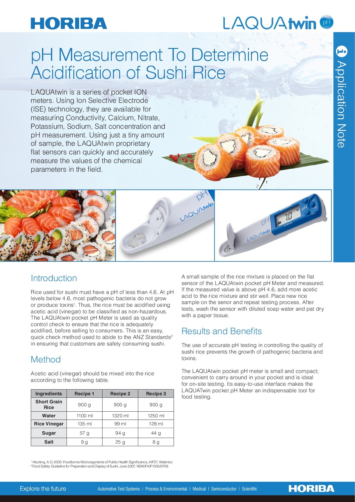 ● pH measurement of fruits and raw fish.