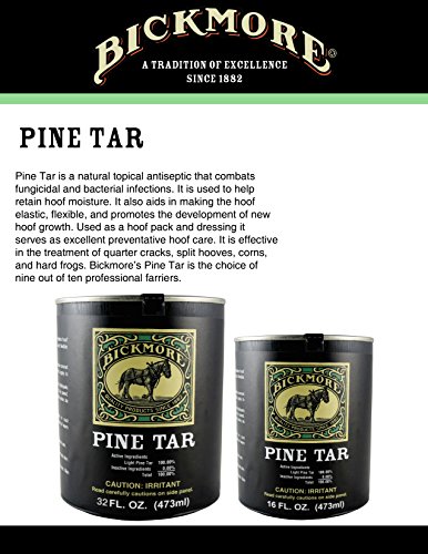Studio : Bickmore Publisher : Bickmore Binding : Misc. Product Description Product is A topical antiseptic formula that helps hooves retain moisture, promote new hoof growth, and makes hooves more elastic and flexible. It provides Effective treatment for quarter cracks split hooves and hard frogs. It Combats fungicidal and bacterial infections. It is Proprietary. To use, Wash and dry hoof. Apply to coronary band of hoof and hoof wall. As a hoof pack apply at bottom of hoof prior to shoeing. Pint-size. 0