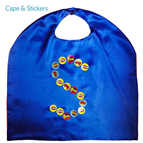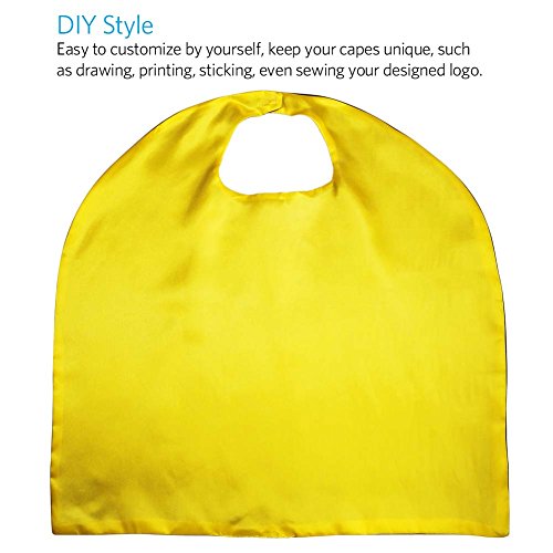 -. Feature : 8 Double-Sided Dual Color Reversible Superhero Capes, with 12 Different Colors, various colors give kids multiple choices. Pure cape lead kids use their imagination to draw and P.R.Int or stick any cartoons they like to the cape, have lots of fun and develop their imaginations, keep unique and different from others. / Cape Size and Material: 27" tall by 27" wide, good for 3-10 years old kids, velcro close at neck, easy to take on and take off. Made of 100% Satin. / Coming with 100pcs round superhero stickers,1.5 inch, popular superhero saying Smash! Bam! Wham! Boom! Krunch! Kapow! Decorate your kids superhero birthday party with these funny stickers, also perfect for school, parade and more! / Wide use: Great for birthday party, masquerade, prom, Christmas, Halloween, kids dress-up, fashion shows, costume party, superhero theme party, etc. Also a good choice for party return gift. / 100% money back guarantee: We offer lifetime money back guarantee, completely risk-free satisfaction guarantee for life.