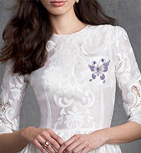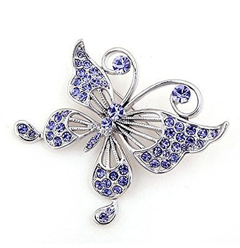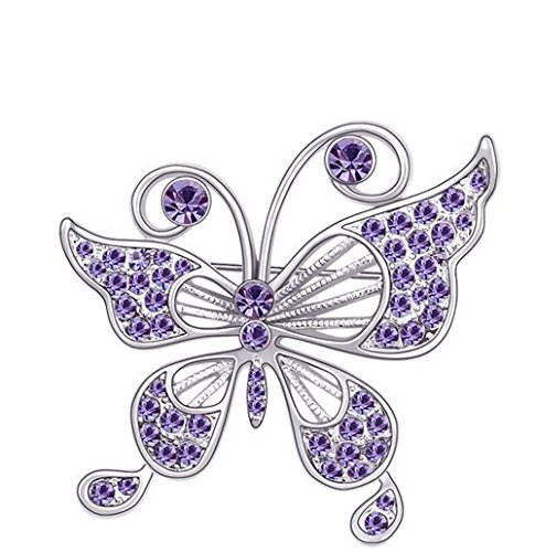 -. Title : CNCbetter Women's Noble Swarovski Elements Crystal Lotus Purple Butterfly Brooch Pin White Gold Plated