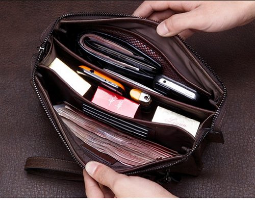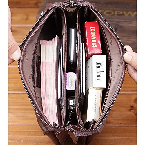 -. Binding : Apparel -. Brand : BELYTON -. Department : mens -. Feature : This bag is made of a whole piece of first layer cowhide so the leather will never split apart. / with a size of 9.25*5.12*2.36 inches,the large capacity makes you could easily put all your casual stuff like smart phone, cards,cashes,tickets,keys, earphone, driver's license, photos inside. / Interior material: head layer cowhide + polyester / MONEY BACK GUARANTEE FOR LIFETIME. / Zippers are strong and easy to use. -. PackageQuantity : 1 -. ProductGroup : Apparel -. ProductTypeName : ACCESSORY -. Size : Large -. Title : Genuine Leather Clutch Bag Soft Long Wallets with Removable Strap for Man, Large Capacity (Black, Brown)