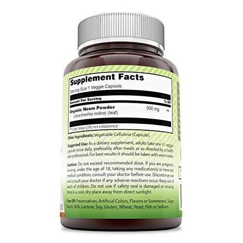 -. Title : Amazing India Neem 500 Mg 120 Vegetarian Capsules * Promotes Blood Purification , Promotes healthy Immunity and Promotes health Skin*