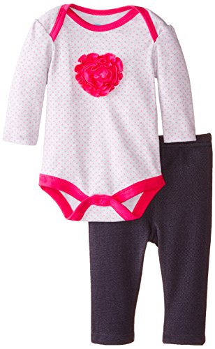 -. Title : BON BEBE Baby-Girls Newborn Polka Dots Bodysuit with Knit Denim Jegging Set