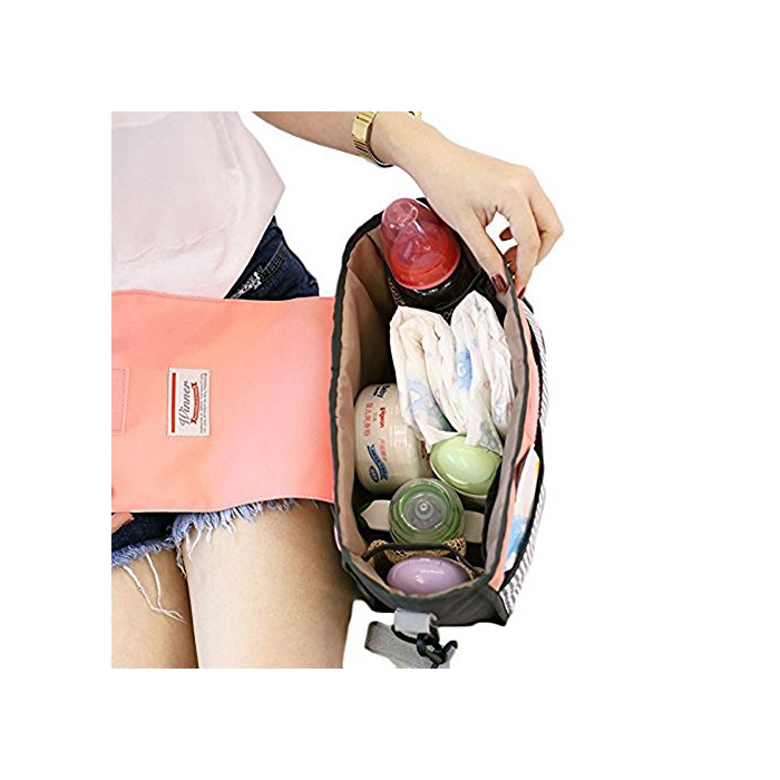 지갑,휴대폰,젖병,마실 것 등 부속품 상자의 백입니다.심플한 디자인에 깨끗이 수납.