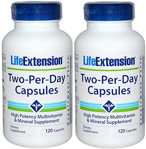 -. Binding : Health and Beauty -. Brand : Life Extension -. EAN : 0687077598342 -. Feature : *VALUE PACK* 2 bottles of Life Extension Two-Per-Day Capsules (2 x 120) / An excellent choice for those seeking a premium-quality nutrient supplement. -. IsAdultProduct : 0 -. Label : Life Extension -. Manufacturer : Life Extension -. PackageQuantity : 1 -. ProductGroup : Health and Beauty -. ProductTypeName : HEALTH_PERSONAL_CARE -. Publisher : Life Extension -. Studio : Life Extension -. Title : Life Extension Two Per Day Capsules, 120 Count (120 X 2) -. UPC : 687077598342