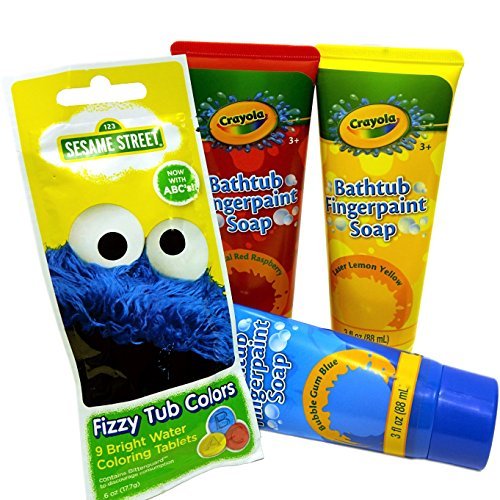 -. Title : Crayola Bathtub Fingerpaint Soaps and Sesame Street Bath Fizzers Bundle with Four Items: 3 Tubes of Soap Paints and 1 Packet of Fizzers
