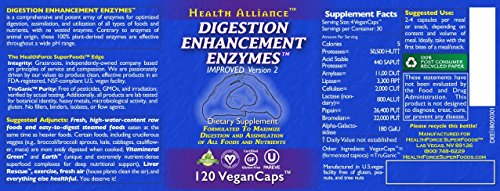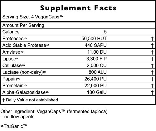 Digestion Enhancement Enzymes™ is a comprehensive and potent array of vegan enzymes that support optimized digestion, assimilation, and utilization of all types of foods and nutrients. 100% full-spectrum, plant-based digestive enzyme blend for enhanced digestion. No fillers or harmful excipients. Digestion Enhancement Enzymes™ is vegan, kosher, and gluten-free. TruGanic™ Purity: Free of pesticides, GMOs, and irradiation; verified by actual testing. Lab tested for botanical identity, heavy metals, and microbiological activity. Available in VeganCaps™. EcoFresh™ packaging delivers superior freshness. Manufactured in U.S. vegan facility free of gluten, peanuts, and tree nuts.Feature