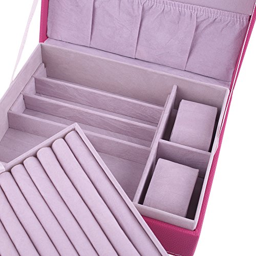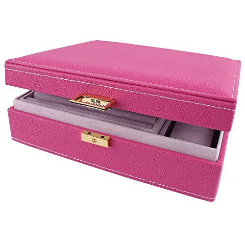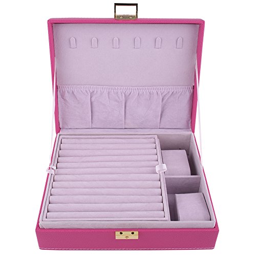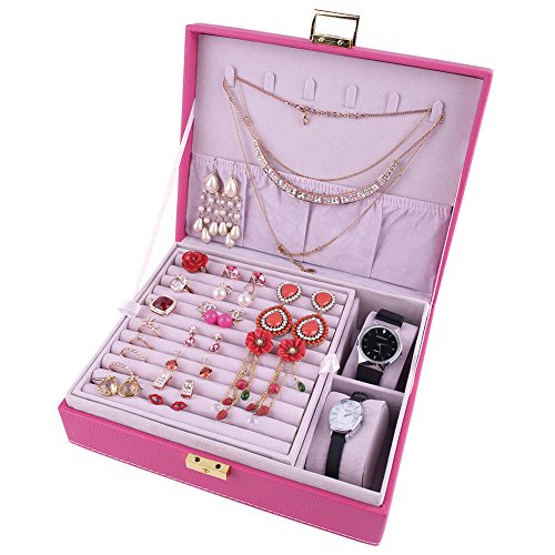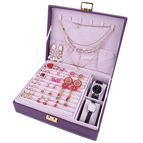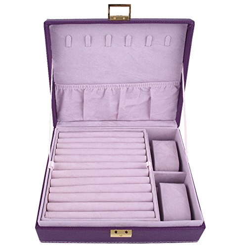 -. Feature : Product brief: large ring tray & 2 watch slot & with key lock ( Jewelry not include ) / Earrings, rings, brackets, necklaces,watch ,etc can be held / Keep all your beautiful jewelry organized and elegantly displayed with this jewelry organizer / Size: 25.5*20.5*5 CM & Weight: 1.2 KG / CUSTOMER SERVICE - If for any reason you're not completely happy with your purchase- if it's damaged in shipping, or even if you change your mind - simply let us know an we will either replace it or refund your money your choice!