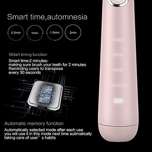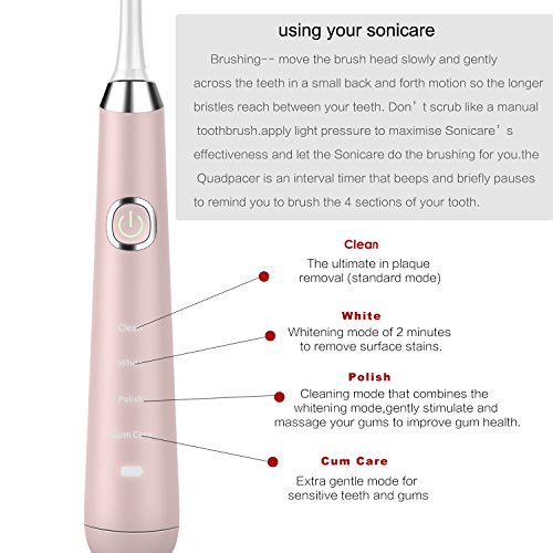 - FOUR BRUSHING MODES: There are 4 modes for your choice: Clean, Sensitive, White, and Gum care. 4 different models are all designed for different oral cleansing and care.