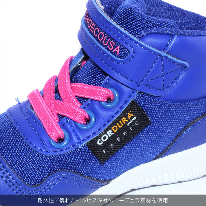足首をしっかりとホールドしてくれるハイカットのスニーカーです。着脱のしやすいベルクロ付き。