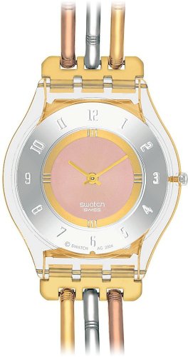 -. Title : Swatch SFK240A tri gold large multicolor dial stainless steel bracelet women watch NEW