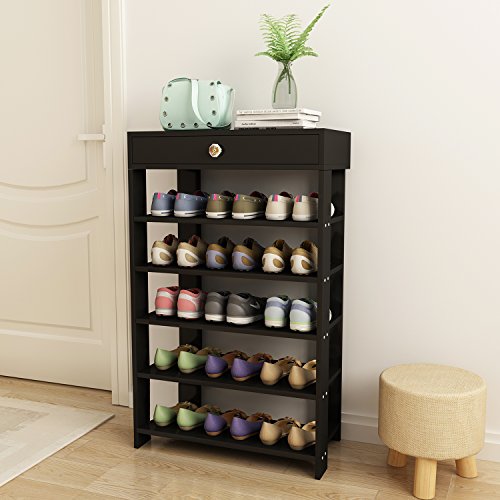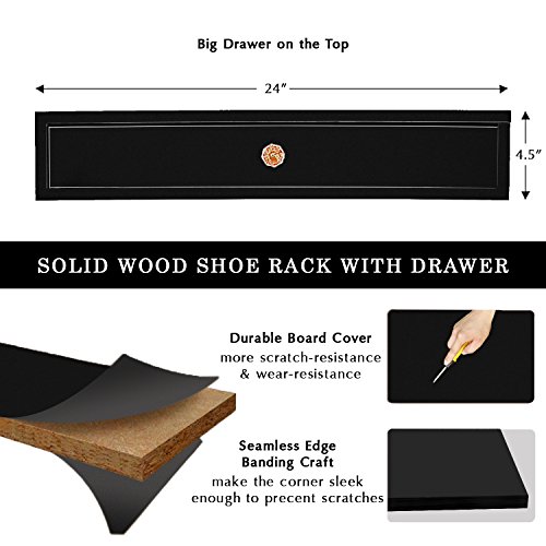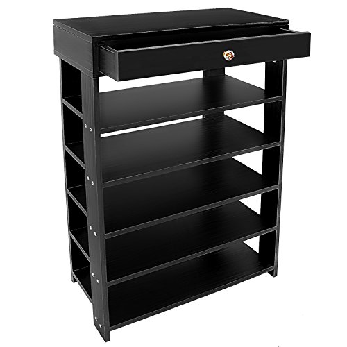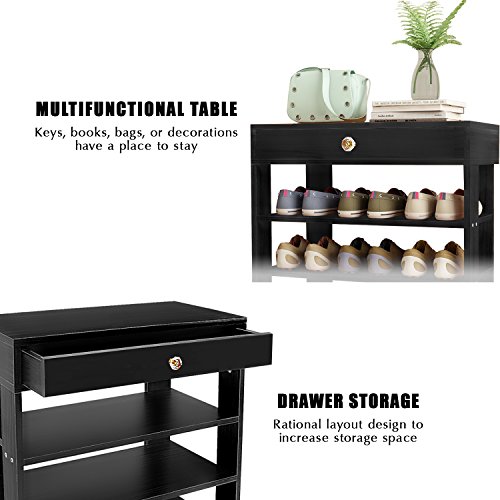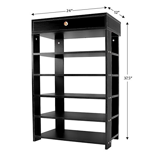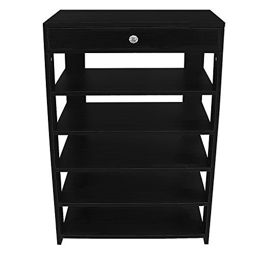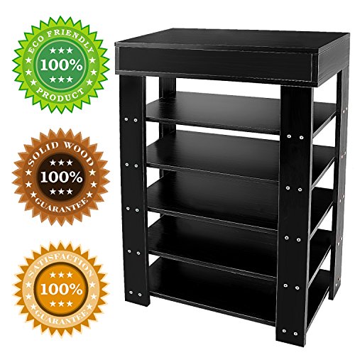 DL furniture 5 tiers Shoe Bench Organizing Rack Entryway Storage Shelf 100% Solid wood (Black)