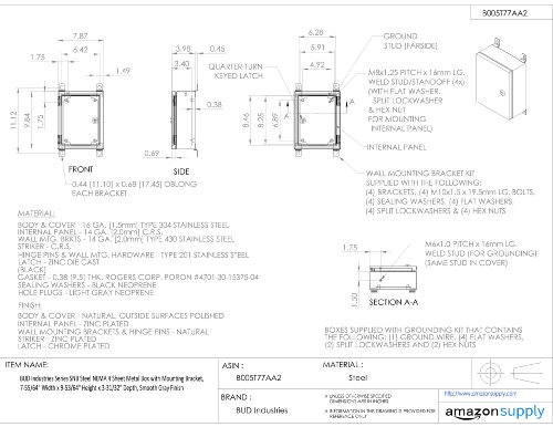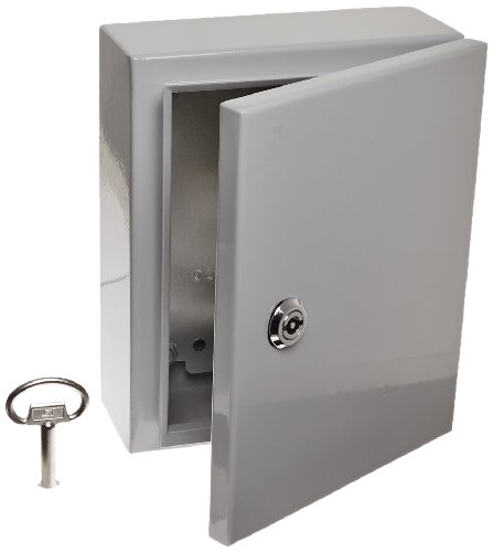 BUD Industries Series SNB Steel NEMA 4 Sheet Metal Box with Mounting Bracket, 7-55/64" Width x 9-53/64" Height x 3-31/32" Depth, Smooth Gray Finish