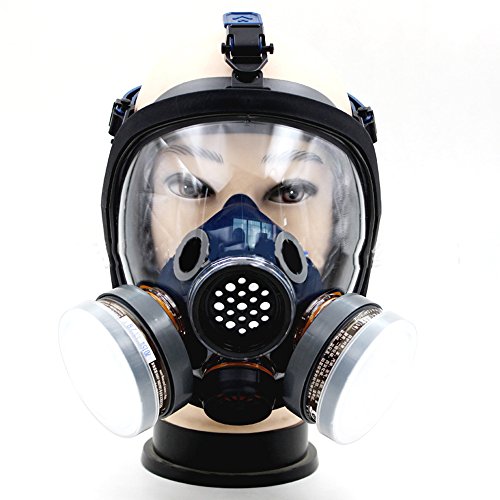 - Type: Activated carbon mask,Standard: GB,Cartridges: 1010#; Easy to exhale: the double filtration system provides reduced breathing resistance and good weight distribution.Lens use full screen design, anti fog, anti friction to keep perspective rate lens, three-dimensional human curve design of mirror,large clear view area.