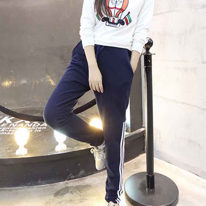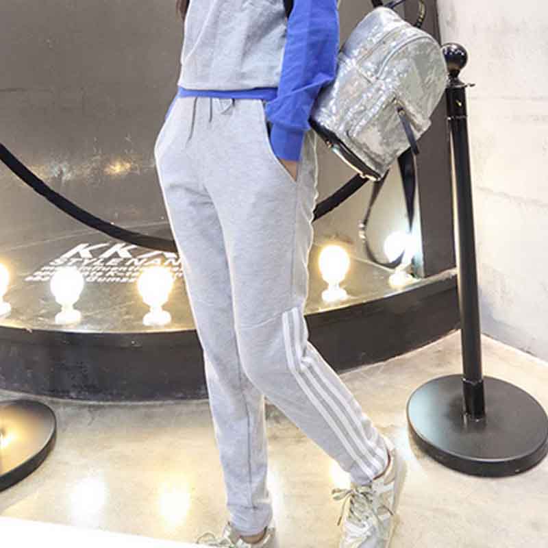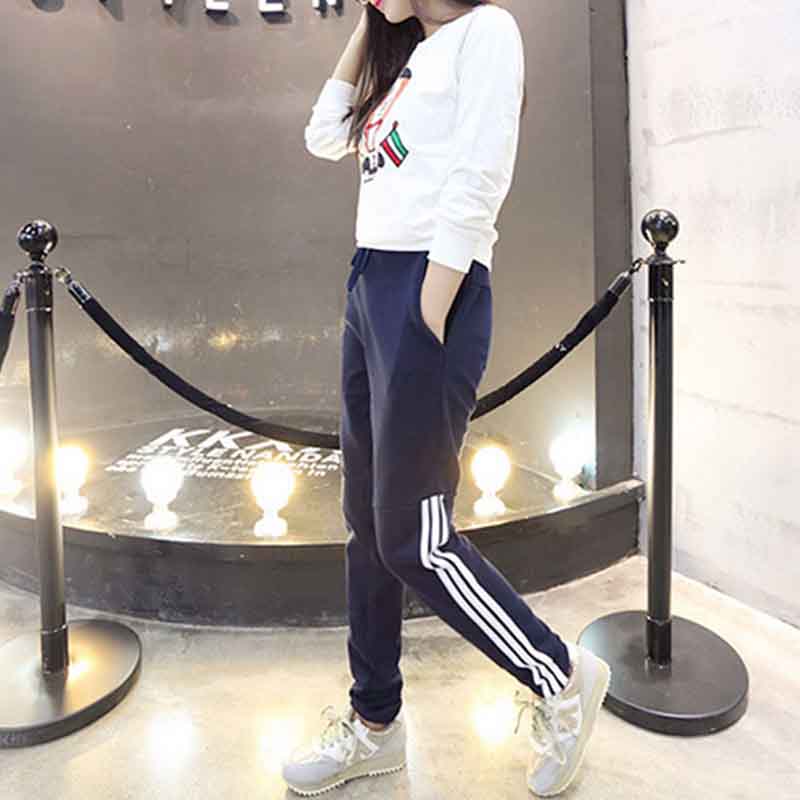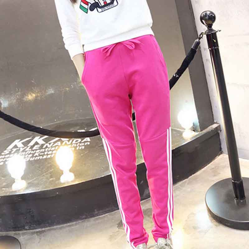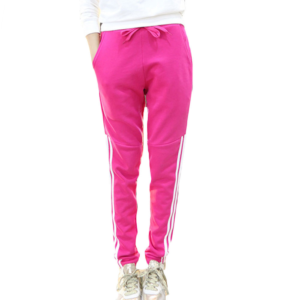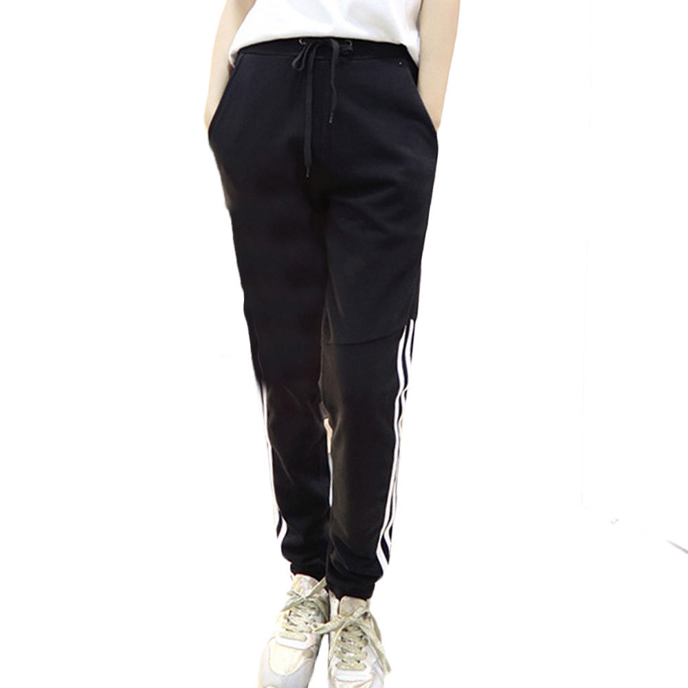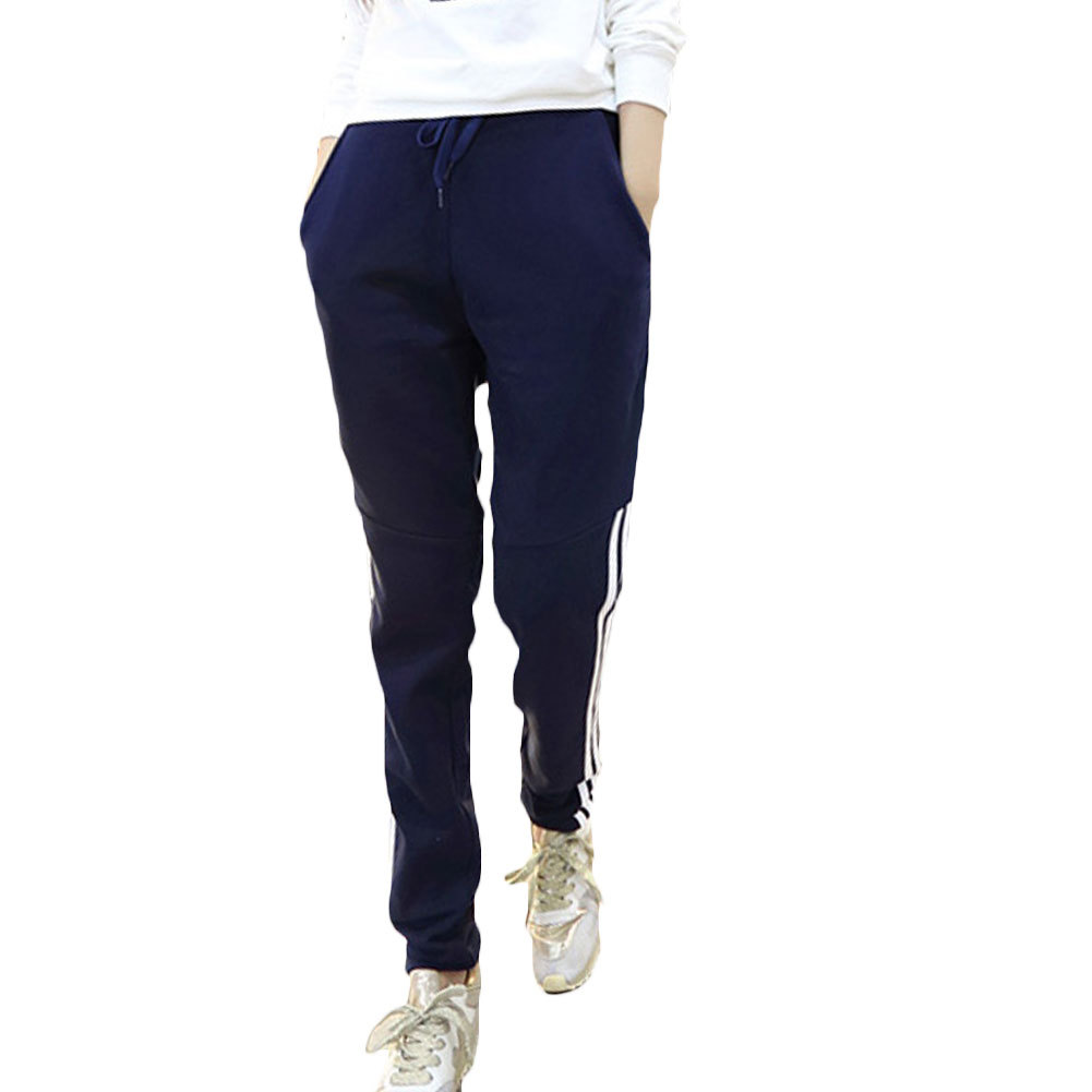 2016 New Sport Pants Women Casual Three Striped Long Pants Solid Color Ropa Running Mujer Unisex Plus Size S-3XL Elastic Waist