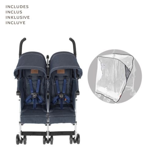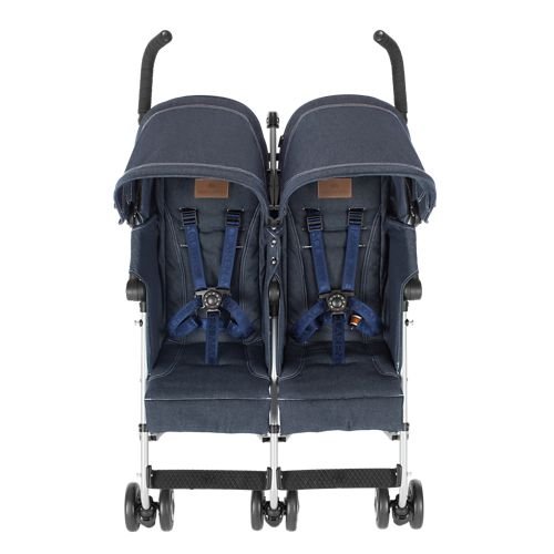A favourite amongst parents, our rich indigo denim brings a fashionable edge to our best selling Twin stroller. Timeless design and appropriate for any outing makes this stroller mom's best accessory. Denim-inspired features includes detailed double stitching, back-pockets for extra storage and an authentic patch. This Twin Triumph includes an assortment of coordinating accessories.