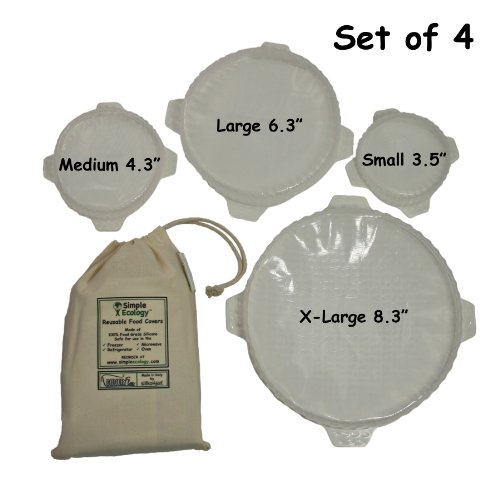 Translucent stretch covers replace single use plastic wrap, zip bags and aluminum foil.