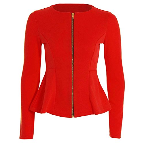 Product Description Womens Ladies Zip Peplum Ruffle Plus Size Tailored Blazer Jacket Top Size 8 - 26 Excellent Quality Blazer Zip Front Style Multiple Colours Long Sleeves Sizes Available - UK 8 To 26 95% Polyester, 5% Elastane Machine Washable Any Queries Please Email Us 0