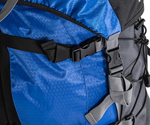 HIGH-QUALITY DESIGN: Hiking backpack with adjustable torso fits a wide range of body types; Top and bottom compression straps to secure sleeping bag, pad, or tent; Integrated bright yellow water-resistant rainfly included with purchase