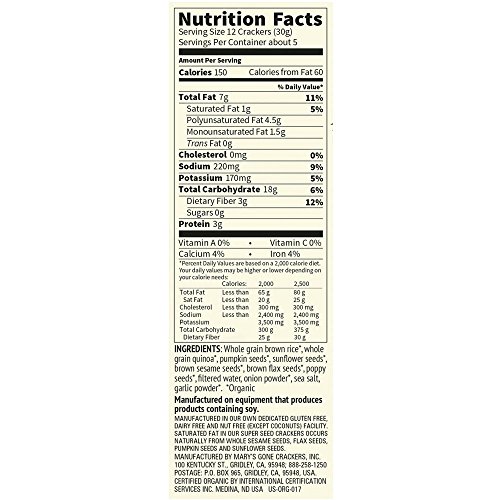 -. Manufacturer : Mary's Gone Crackers