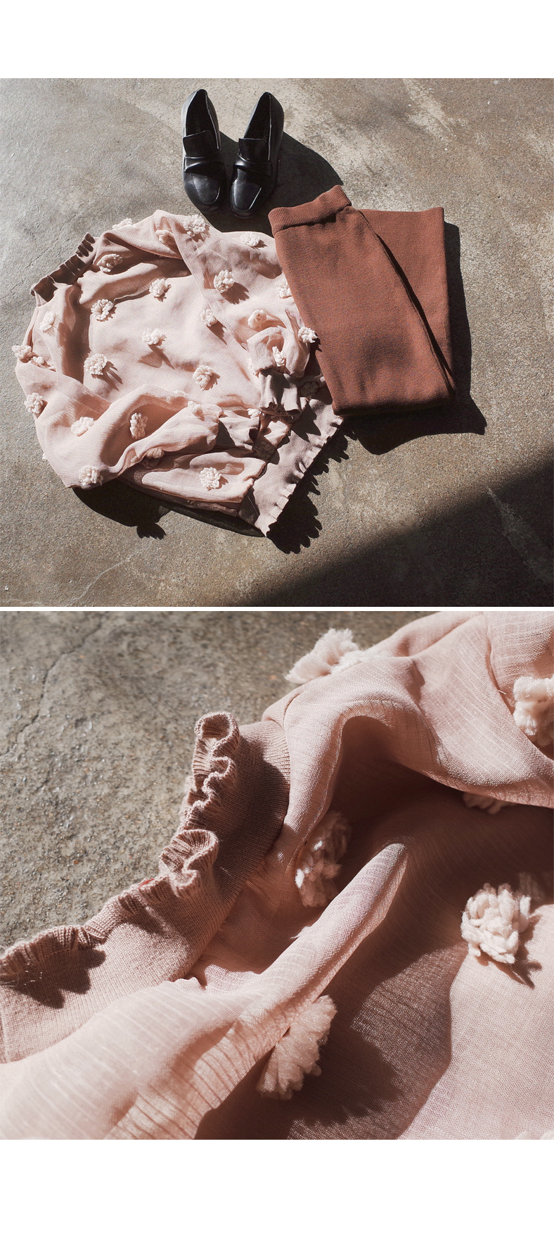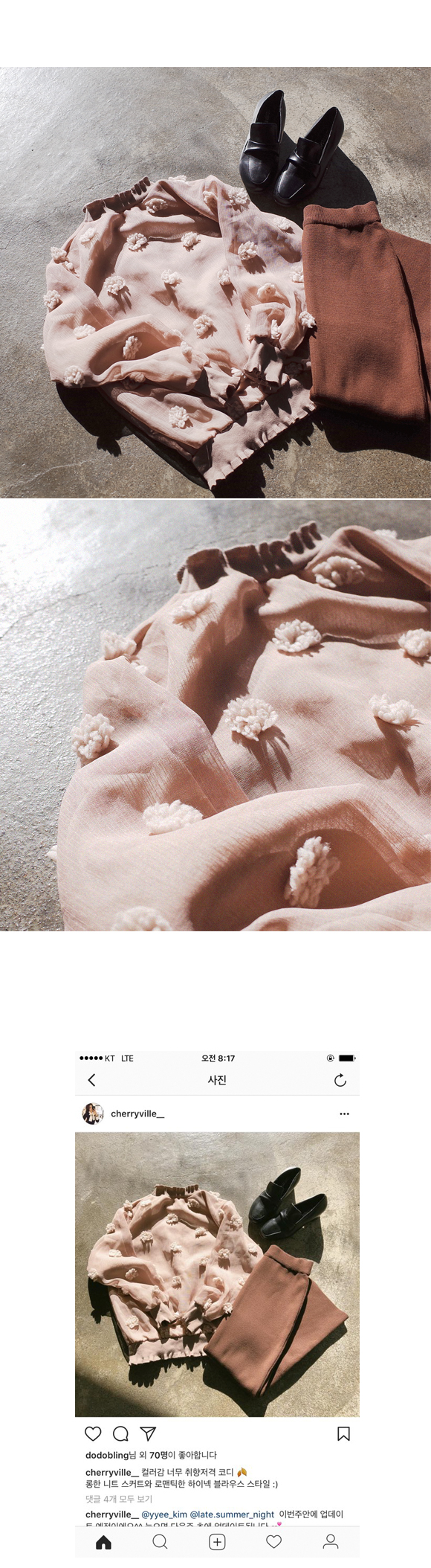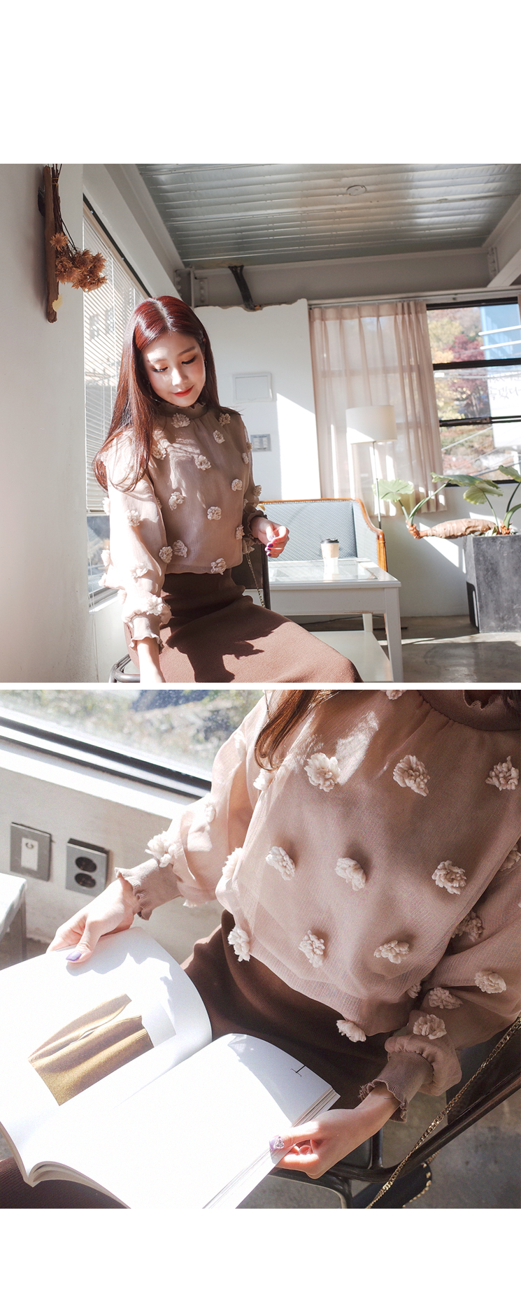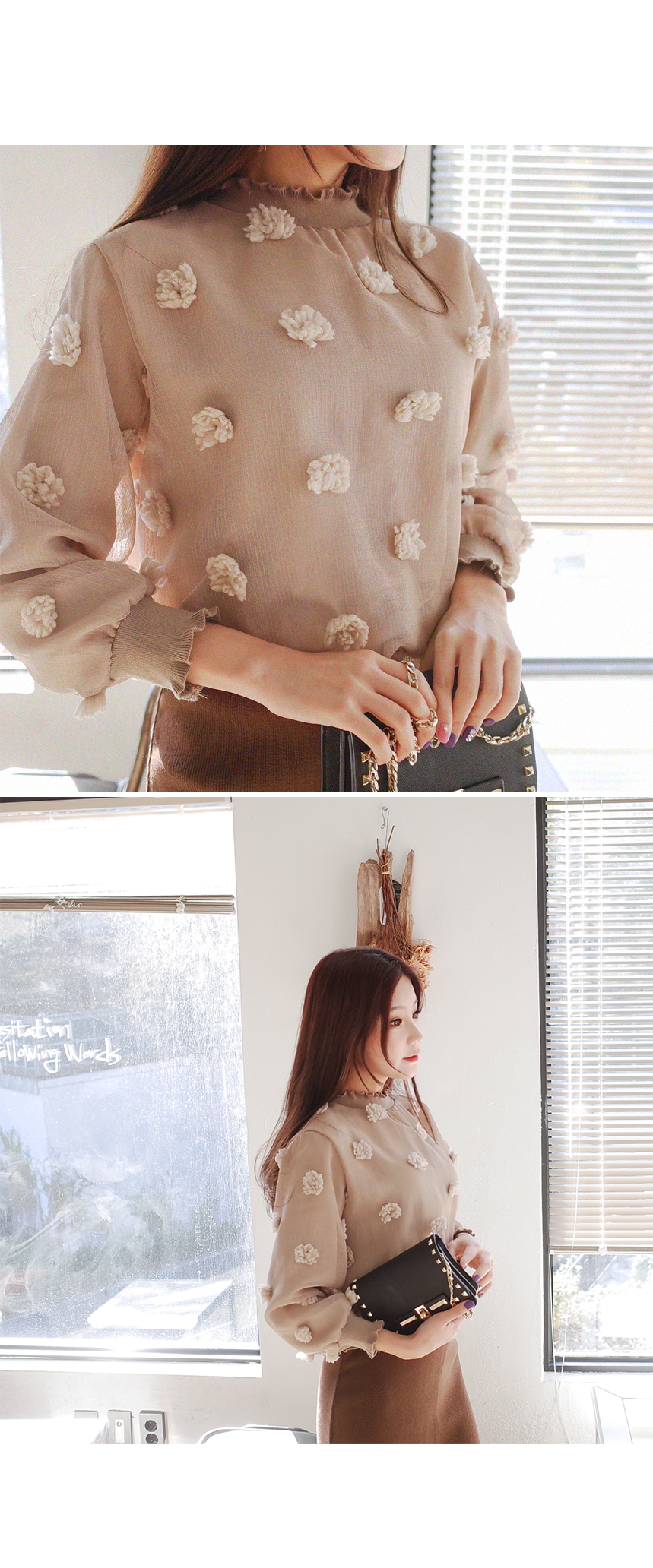 러블리한 꽃 디테일이 예쁜 블라우스입니다