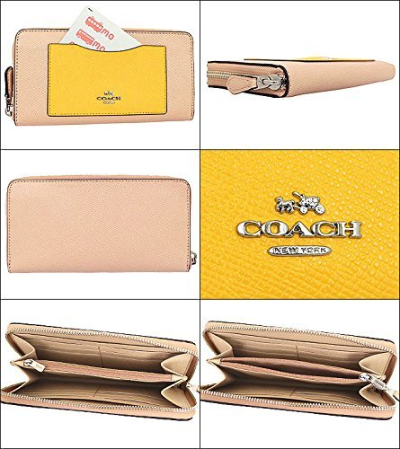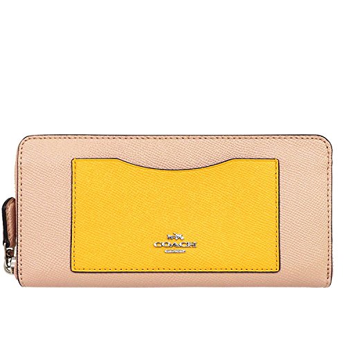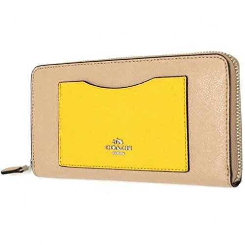 Coach Accordion Zip Cross Grain LeatherWallet BiColor Beechwood / Yellow F86858