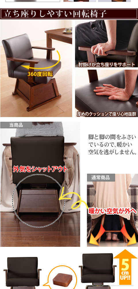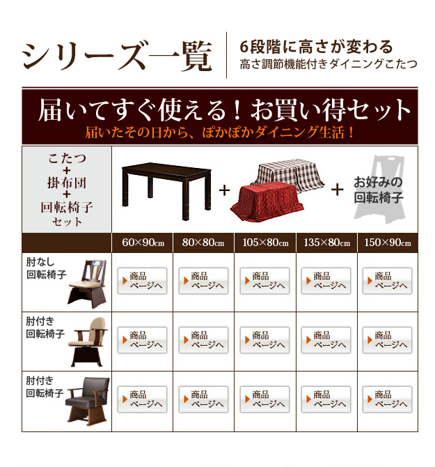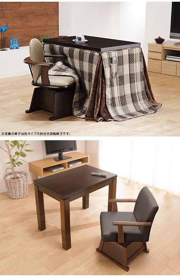 ●セット内容:こたつx1台、こたつ布団x1枚、肘付回転椅子x1脚