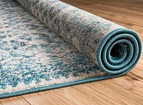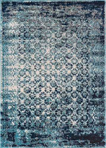 Cheshire Blue is an Old World style made fresh and new with modern design elements. A classic Moroccan lattice and border design is updated with a contemporary palette of bright and dark blue softened by neutral ivory. The pattern is heavily distressed to give the quality of a timeless antique. A plush 0.5" pile of air twist frieze polypropylene gives an exceptional textured look. The yarn is soft, stain resistant, and doesn't shed or fade over time. A 100% jute backing is safe for wood floors and all four sides of the rug are serged for improved durability.Feature