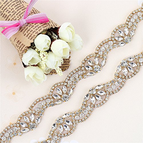 Wedding Sash Belt Applique 1 yard, Crystal Rhinestone Applique Handcrafted Sparkle Sewn or Hot Fix for Bridal Dresses Women Gown Evening Prom Clothes - Gold
