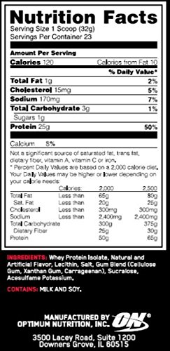 ReleaseDate : 2015-11-09 Studio : Optimum Nutrition Publisher : Optimum Nutrition Binding : Health and Beauty Product Description ON, the most trusted brand in sports nutrition, now introduces ON Isolate. Each scoop delivers 25 grams of high quality, fast-acting protein, exclusively from premium ultra-filtered Whey Protein Isolate, to help support muscle building needs after training. 0