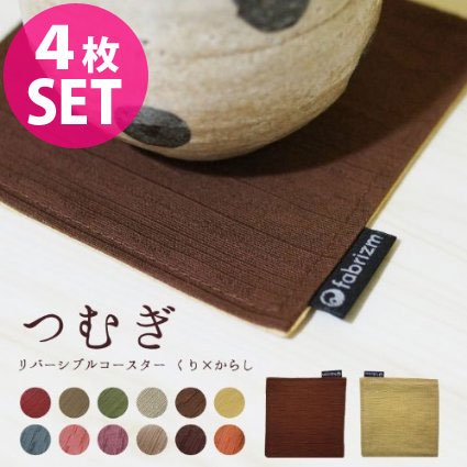 -. Title : fabrizm 日本製 コースター【4枚セット】 10×10cm つむぎ リバーシブル くり×からし 1083_br-br2