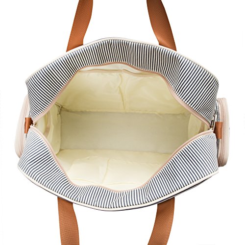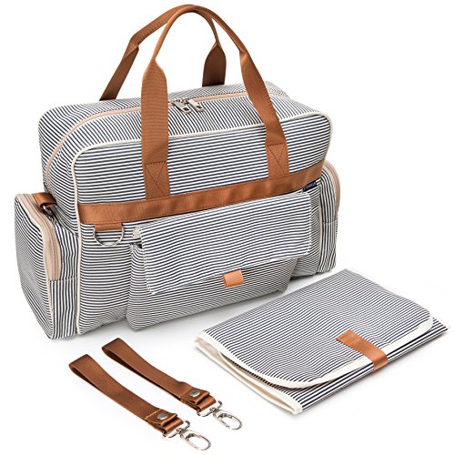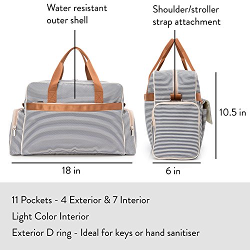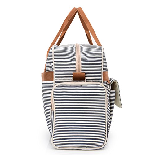 THE ON-TREND AND STYLISH UNISEX DESIGN MAKES THE PERFECT TRAVEL COMPANION AND WILL KEEP YOU LOOKING YOUR BEST – Timeless style in chic nautical stripe with contrasting brown straps ensures this diaper bag keeps you on trend and you looking great. The unisex style of the bag makes it great for mom or dad to use.