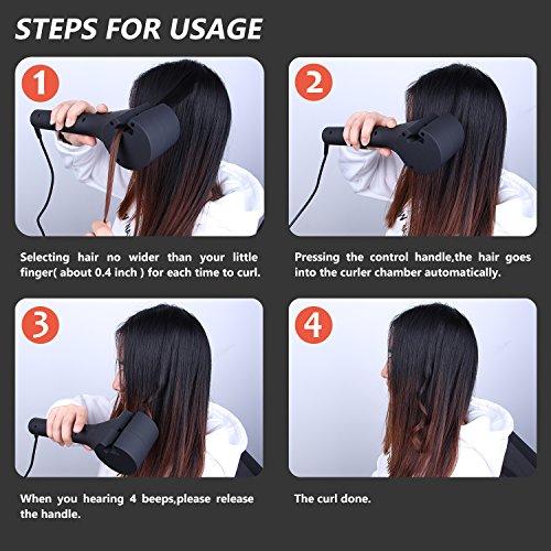 - Automatic curl technology: You do not need to roll the hair manually as the regular curler any more, the straight hair auto goes into the curler chamber then curly hair comes out, you could have salon quality curls at home.