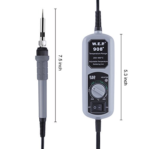 - Temperature Adjustment Module and ON-OFF Switch, you can start soldering in any places. The temperature range is 200°C ~ 480°C / 392°F ~ 896°F, the working temperature is 0-40℃.