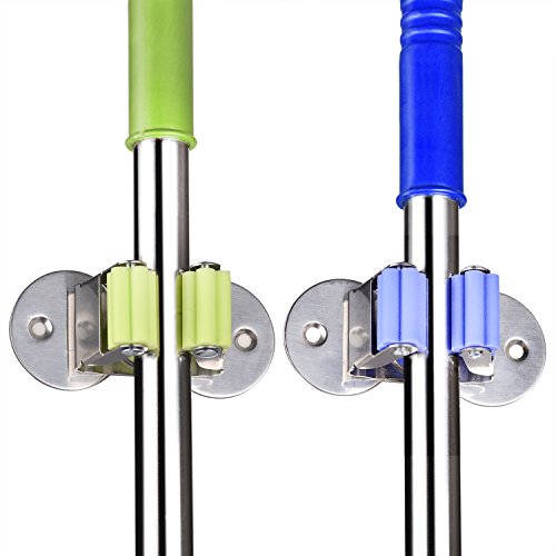 2-Pack stainless steel mop and broom holder with 3m self adhesive and double screws,you can directly Stick to the Wall by the 3M self adhesive,also can nailed to the wall by the double screws.so economic and practical!