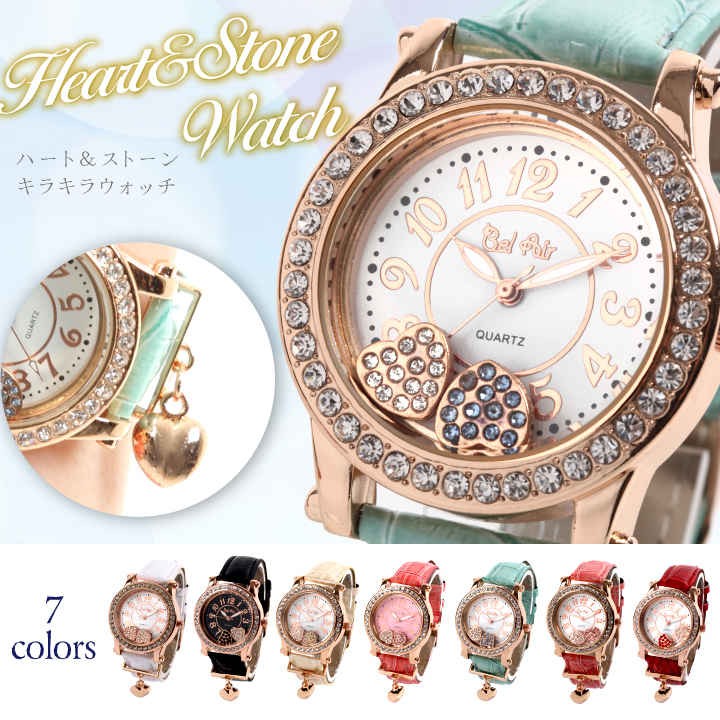 文字盤の中ではラインストーンを埋め込んだ2つのハートモチーフが