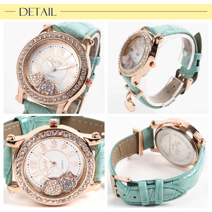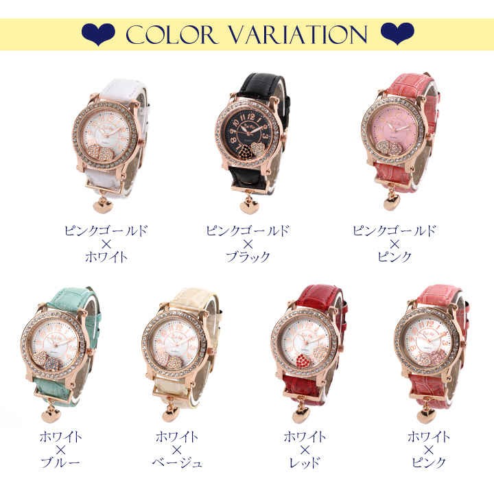 ハートチャームをあしらうなど、とても手の込んだ腕時計です。